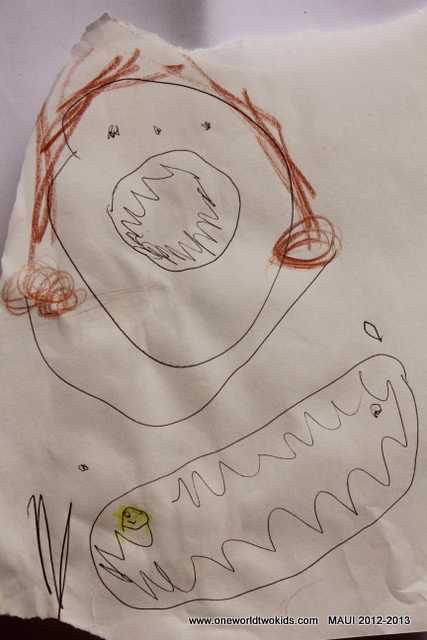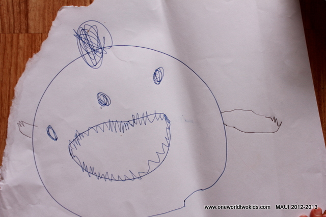 On 12-12-12, everyone woke up. Ezra was up at 5AM and stayed up. The wind is blowing softly. The clouds are white. “Do yellow rabbits like bananas?” Went for a walk around the abandoned golf course of Kapalua. good trails, but forgotten and not really scenic, or wild for that matter. Ezra found a grasshopper in the bathroom. Near sunset we all went to the park. Viena and I braved the waters to go snorkeling with our masks. We saw some sea urchins. Ezra and Viena really do play well together. A laughing fun time. Ezra fell asleep on time, as did a very tired Viena. We read good Hawaiian stories from the library. And then the darkness of the news set in and the spirits of the North traveled star after star to dampen my night.