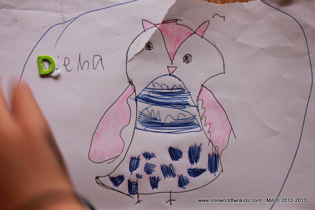 Ezra and Viena woke up without screams. So nice. Ezra was just looking at a book and not demanding breakfast. Maybe if they woke up in their own room. Someday in the future. Drove to the DMV. Both Dwana and I pass our written driving test. Took the drug screening test for Hale Makua. I can’t believe I would not pass that test. Came home and went for a run to Kapalua near the Ritz Carlton. The landscape is different up north, more like Palos Verdes. The new shoes gave me a blister, small but significant. Went clover picking in the dark with a flashlight. So good, so peaceful. Uppa is not doing well, on his last days. Mylon lost his trust rating and must start over with his family up North. Ezra and Viena are having a candlelight dinner on the lanai. The prayer flags are hanging. Our lanai is lit up. Warm outdoor weather. Ezra drew a duck, swan, pelican on the window.